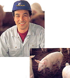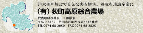 | (株)丸福のグループ会社として昭和50年に(有)荻町高原綜合農場を設立。月間5,000頭の肉豚を出荷しており、生産から販売まで一貫経営を行なっています。 私たちはこれまで、糞尿が吸着しやすく堆肥化しやすいオガクズを使って豚を育ててきました。常に清潔な環境が保たれているオガクズ豚舎は、臭気公害をずいぶん減らし、畜産業のイメージを変えるものとなりましたが、やはりこれだけの大規模になると、どうしても抑えきれない部分があったんですね。 同時に、いままでは豚舎から排水される汚水は自然浄化させていたんですが、瀬戸内法が施行されることもあり、汚水処理施設を建設することに。 しかしその汚水処理施設で浄化された水を豚舎を洗う洗浄水として使ったところ、驚いたことにオガクズよりもさらに高い消臭効果が表われたんです。 これには培養力の高い土壌菌がアンモニアに作用されたものと思われます。 これからも公害処置に対する試みを積極的に行ない、養豚を荻町の地域産業として発展させていきたいと思っています。 |