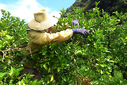 平成9年に、脱サラして東京から戻り、実家のかぼす農園を継ぎました。県内に多くのかぼす生産者がいる中、差別化を図るため有機栽培に取り組んでいます。周囲からは、有機かぼすの栽培は手間がかかって難しく、収穫量が落ちると言われましたが、やっている人がいないということで、なおさらチャレンジしてみたくなり、平成23年に「大分有機かぼす農園」を設立しました。現在、有機JASの認定を受けて、かぼすの栽培をしているのは県内ではここだけです。 |